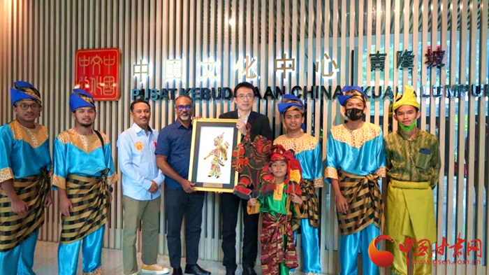 作為“2022馬來西亞-甘肅文化旅游創作交流計劃”的活動之一,甘肅省文化和旅游廳副廳長萬學科、吉隆坡中國文化中心主任張杰鑫、馬來西亞旅游、藝術和文化部國際司副司長蘇瑞亞在開、閉幕式上發言。環縣非物質文化遺產保護中心特別委托吉隆坡中國文化中心主任張杰鑫代表中方向馬來西亞旅游、藝術和文化部國際司副司長蘇瑞亞和吉蘭丹皮影戲傳承人贈送了皮影紀念品。