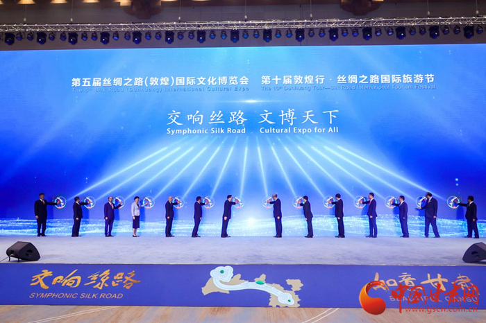 第五屆絲綢之路(敦煌)國際文化博覽會和第十屆敦煌行·絲綢之路國際旅游節于2021年9月24日—26日在甘肅省敦煌市隆重舉行。中共中央政治局委員、中央書記處書記、中宣部部長黃坤明以視頻形式出席開幕式暨高峰會議并發表主旨演講,300多名國外、國際組織及國內省區市代表現場參加會議,400多萬網友線上參加有關活動。大會以習近平新時代中國特色社會主義思想為指導,認真落實“一帶一路”倡議,以線上線下相結合的方式舉辦一系列主體活動,有力促進絲路沿線各國文化交流與旅游合作,有效增進文化認同與情感共鳴,是一次展示中國文化自信、共商“一帶一路”建設、推動文旅融合發展的盛會,是一次提升甘肅對外影響力、展示開放新形象、凝聚發展新動力的盛會,得到了國際社會的廣泛贊譽和一致好評。