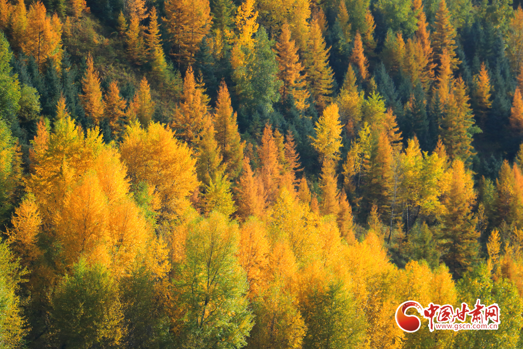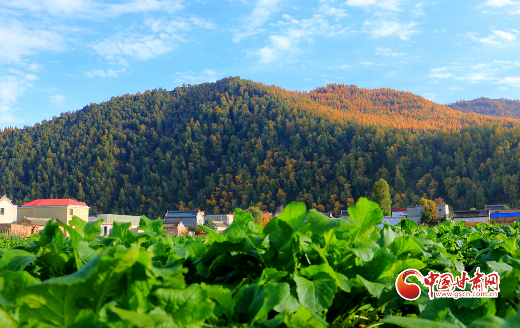 金秋時節,岷縣十里鎮秋色漸濃,山林樹木色彩斑斕,岷山洮水與民居田園相映成趣,勾勒出一幅美麗的秋日畫卷。