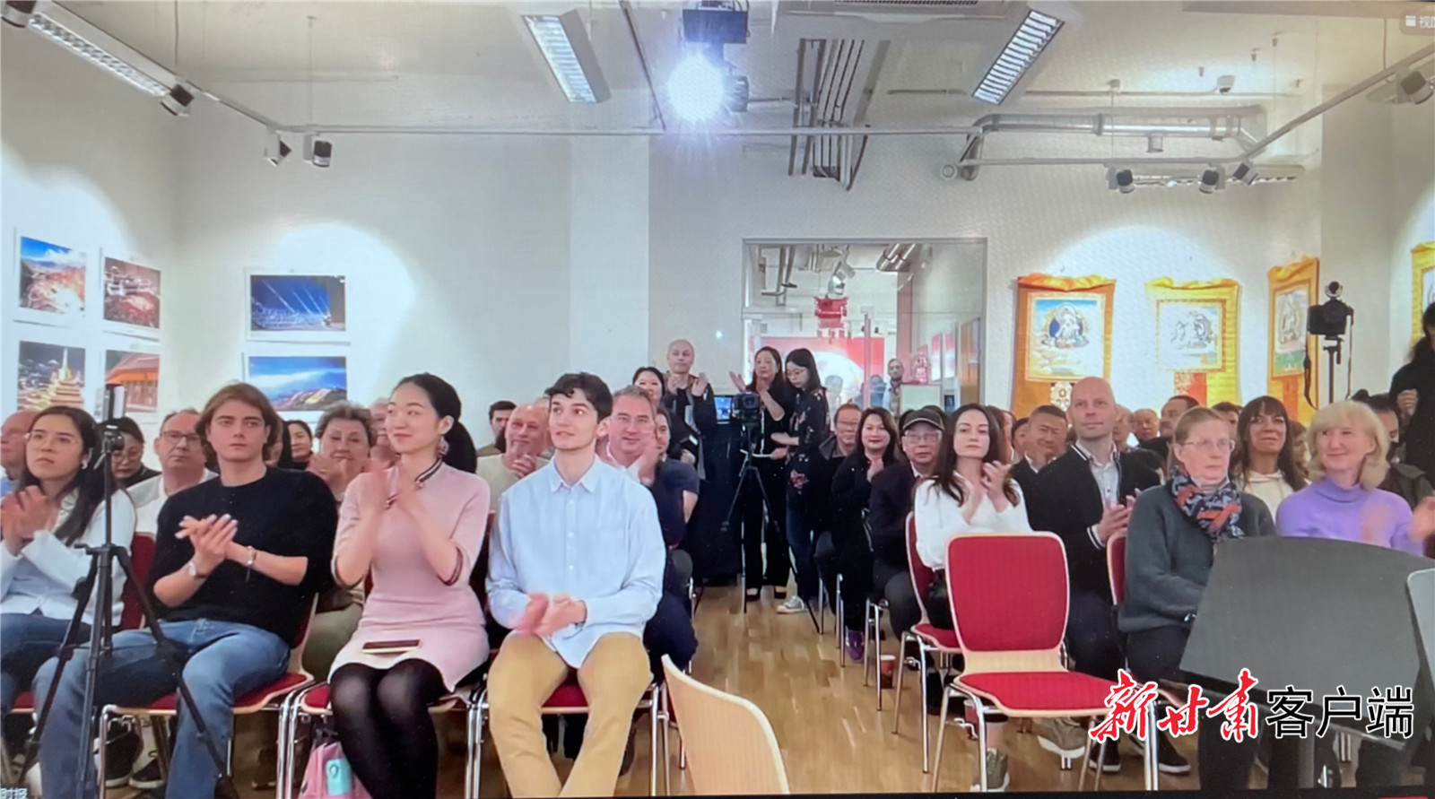 在奧地利維也納參會觀眾正在收看原創MV《我畫個甘肅給你看下》。