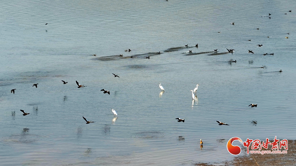 深秋時節,永靖縣太極湖濕地蘆葦搖曳,野鴨戲水,白鷺蹁躚,宛如一幅美妙的秋日畫卷。