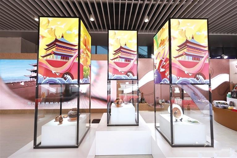在展區燈光映照下,蘊含古樸之美的大地灣彩陶在甘肅省文化和旅游廳組織搭建的人文交流——“中國旅游”甘肅展臺天水展區熠熠生輝,吸引了眾多目光。由秦安縣康坡陶藝農民專業合作社提供的8件大地灣彩陶,無論是創意構思還是表現手法,都體現了5000多年前先民高超的造型能力和藝術水平,瓶身圖案的韻律節奏及對稱均衡的形式完美地呈現了彩陶藝術作品的魅力,為進博會甘肅展臺增添了厚重的人文氣息。