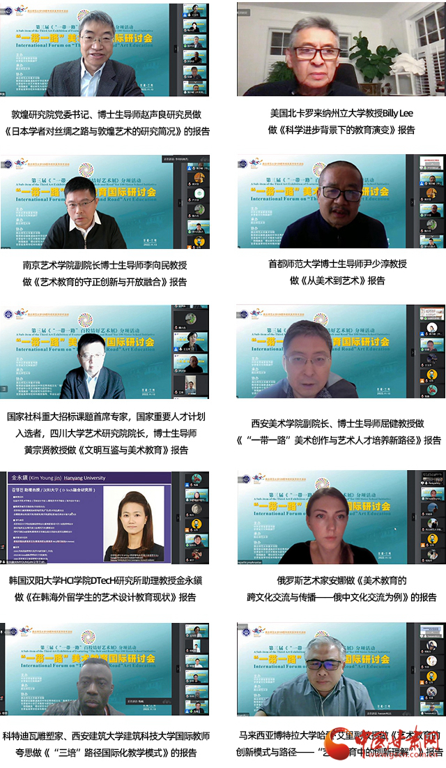 中國甘肅網(wǎng)11月16日訊 (本網(wǎng)記者 張?zhí)m琴 通訊員 王秀)推進(jìn)“一帶一路”沿線國家和地區(qū)美術(shù)交流,促進(jìn)美術(shù)教育的國際化合作和發(fā)展,搭建國際交流的學(xué)術(shù)平臺,“一帶一路”美術(shù)教育國際研討會14日在西北師范大學(xué)落幕。來自美國、韓國、俄羅斯、馬來西亞等十個國家,三十八所海內(nèi)外高校、研究院、美術(shù)館、美術(shù)協(xié)會、雜志社、中小學(xué)領(lǐng)域近五十位專家在線上參加了會議,深入分析了當(dāng)前美術(shù)教育所面臨的挑戰(zhàn)與機(jī)遇,共同探討了面向未來的美術(shù)教育模式、路徑和前景。