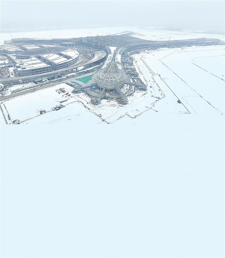 本次提升的屋蓋鋼結構是航站樓主體結構分區提升單位中體量最大的一個區域,其覆蓋面積達2.1萬平方米,重達3600噸,提升高度18.5米,共設置32個提升點,本次提升將實現航站樓主體結構從東西兩側向中心的順利合龍。