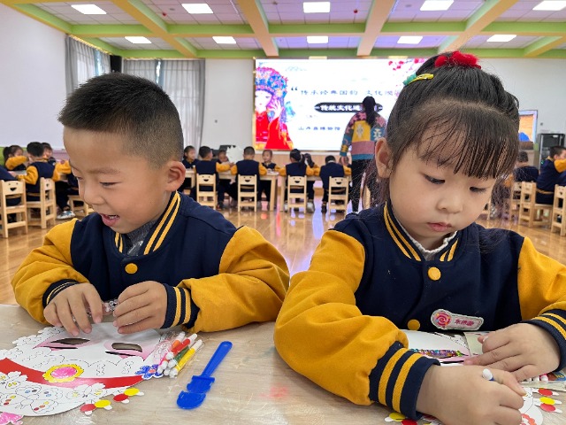 中國教育報-中國教育新聞網訊(記者尹曉軍通訊員張亮楊兆玉)近日,甘肅省張掖市山丹縣東街幼兒園邀請縣博物館聯合開展“傳承經典國韻文化浸潤童心”傳統文化進校園活動。活動中,博物館的老師不僅為孩子們講述了京劇臉譜的內涵、特點及分類,還帶領孩子們模仿了戲曲選段中的動作,現場唱了戲曲名段。在老師的講解示范下,孩子們巧手繪制了臉譜。現場孩子們熱情高漲、積極參與,傳統文化悄無聲息在孩子們心中“生根發芽”。