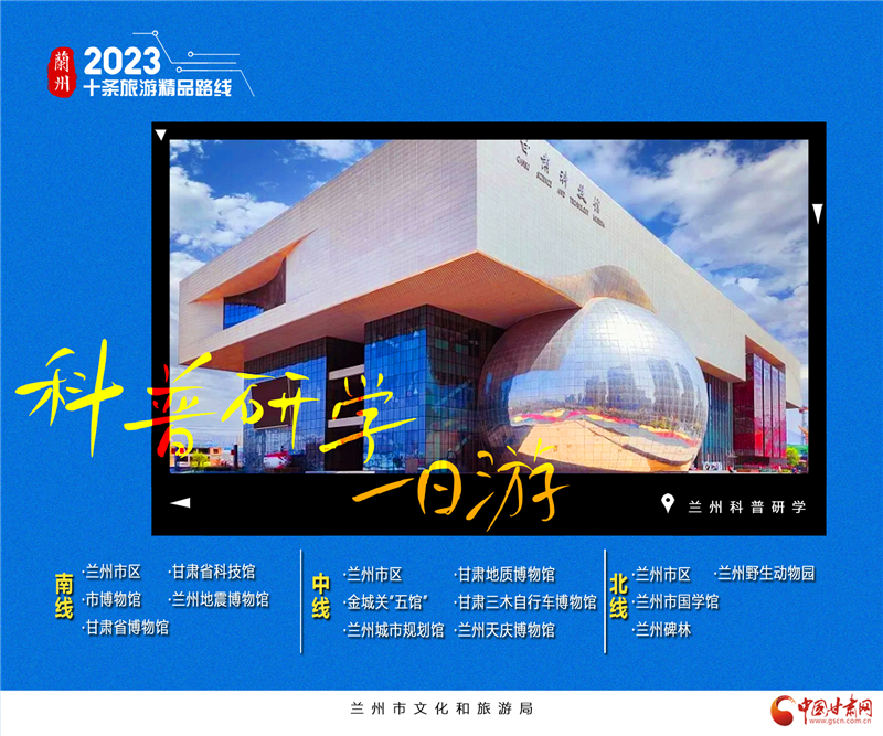 6.蘭州科普研學1日游。蘭州博物館有很多,可謂是品類齊全。綜合類博物館如省博、市博自不用說,中國旅游標志“馬踏飛燕”原件陳列真的不想去看看?各類專門博物館也是非常齊全,秦腔博物館、黃河橋梁博物館、城市規劃館、自行車博物館、地震博物館等……“蘭州科普研學1日游”三條線,分別為南線、中線和北線。