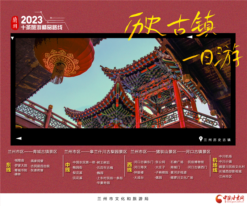 1.蘭州歷史古鎮1日游。蘭州多古鎮,古鎮出靈杰。作為蘭州古鎮的代表,什川、青城和河口3座古鎮實至名歸,鎮中民居保留完整,西北風情濃厚,祠堂、書院、隍廟,謎團和傳說,古鎮的“標配”全都有。“歷史古鎮1日游”四條線,分別為東、中、西三線和機場線。