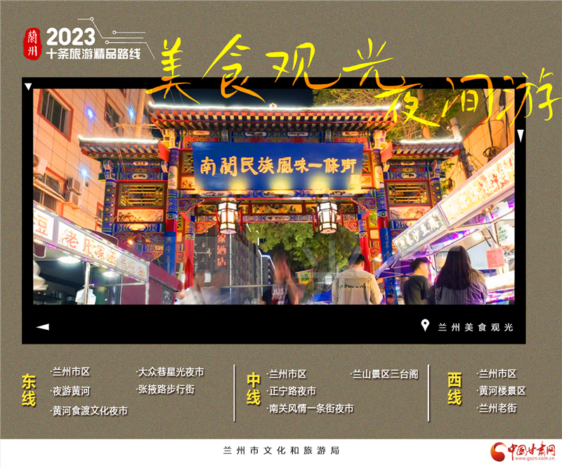 10.蘭州美食觀光夜間游。蘭州牛肉面,全國人民都知道,可這只是蘭州美食的冰山一角。蘭州美食民族風情濃厚,這里“手抓羊肉”“烤全羊”“黃燜羊肉”“爆炒牛犢肉”可以滿足吃肉的一切念想;這里的“灰豆子”“冬果梨”“甜胚子”“牛奶醪糟”等可以滿足對甜食奶茶的另一種體驗;這里的釀皮子、寬汁流粉、土豆片、洋芋攪團等讓味蕾感受美妙!“蘭州美食觀光夜間游”三條線,分別為東線、中線和西線。