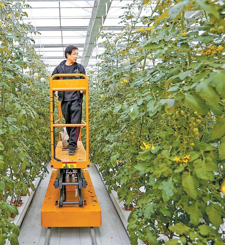 武都區石門鎮青隴現代農業產業園里技術人員在管護櫻桃西紅柿