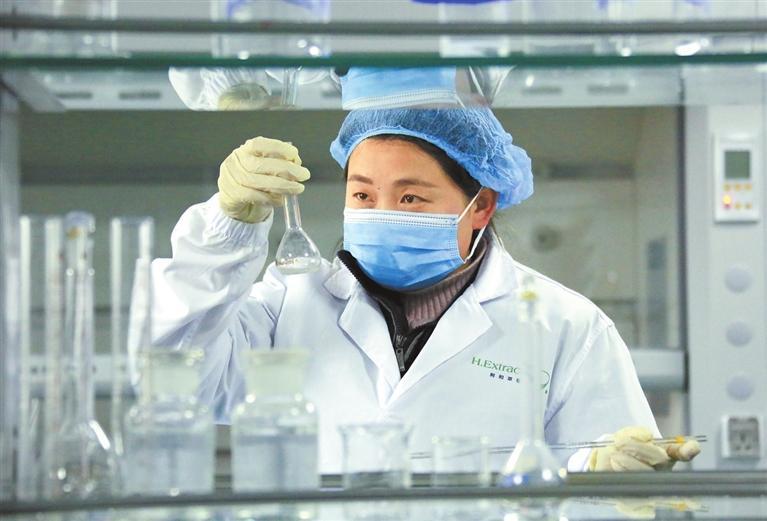 成縣紅川鎮的甘肅暖山農業科技有限公司葉黃素提取車間里,工人們查看設備運行情況