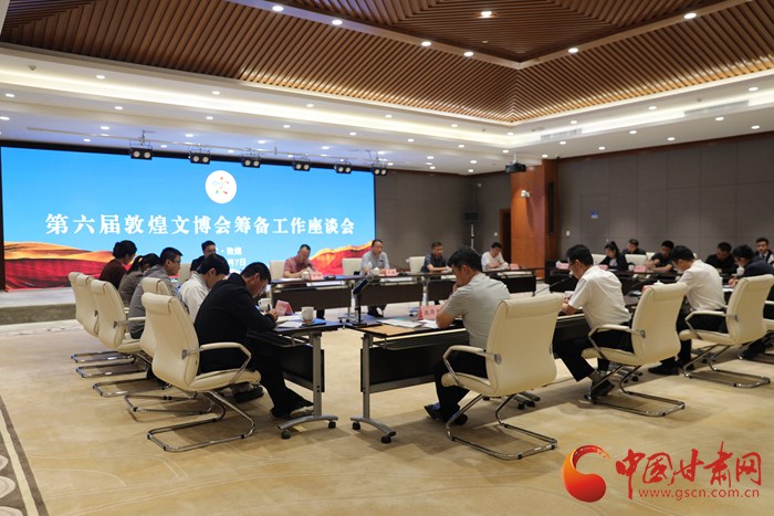 在隨后召開的座談會上,敦煌市相關負責人介紹了籌備工作情況和需要協調解決的事項。文化展覽組,論壇會議組、接待聯絡組相關負責人與敦煌市對應工作組進行對接,對需要協調解決的事項進行了交流。