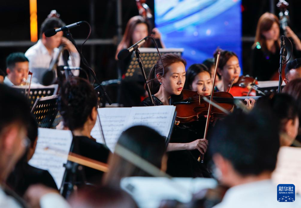 7月31日,來自甘肅省歌劇院、甘肅交響樂團的演奏者們在表演節目。新華社記者 方欣 攝