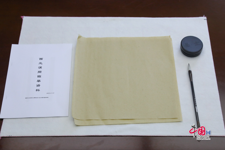 蘭州大學(xué)古文字學(xué)強(qiáng)基計(jì)劃同學(xué)臨摹簡(jiǎn)牘所用的資料與文具(拍攝于7月31日)。中國(guó)網(wǎng)記者 鄭偉 攝