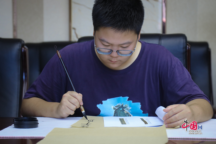 7月31日,蘭州大學(xué)古文字學(xué)強(qiáng)基計(jì)劃同學(xué)展示臨摹簡(jiǎn)牘的書(shū)法作品。中國(guó)網(wǎng)記者 鄭偉 攝