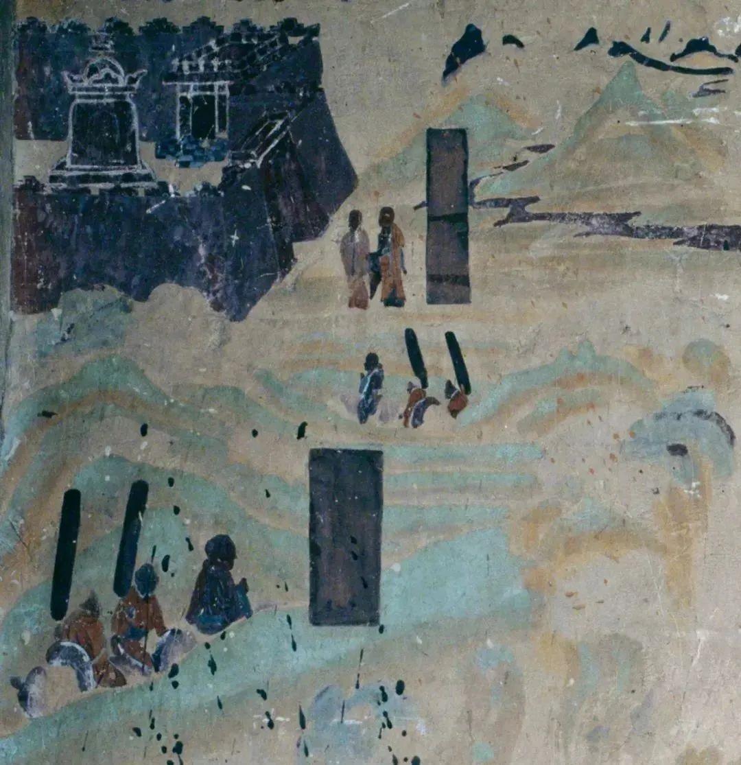 △漢使到達大夏國 這個畫面表現了張騫最后到了大夏國,見到了佛塔,知道了金人實際上是佛像。