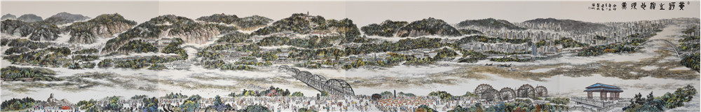 在《黃河之濱也很美》的長卷中,有黃河母親雕塑,有中山橋,有白塔,也有城市規劃館,有羊皮筏子也有疏通河道的船。