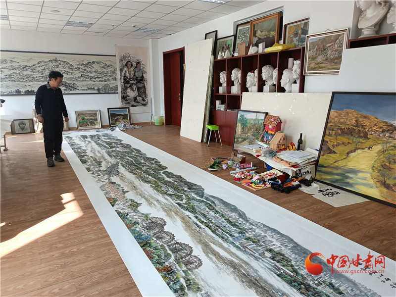 李建春說,作為生活在蘭州的人,對于蘭州再熟悉不過,這些年,他經常在黃河邊行走,畫下一張張素描,然后按照空間將畫作串聯起來,在虛與實,歷史與現實的交匯中表現出來,就是一幅凝聚蘭州美好的長卷。