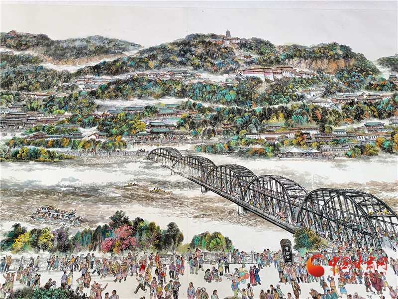 李建春說,畫面上共有500多個個性鮮明的人物,蘭州是多民族兄弟姐妹共同的家園,黃河是母親河,從這個角度,他描繪了黃河兒女的形象,大家生活在蘭州,也熱愛著蘭州。