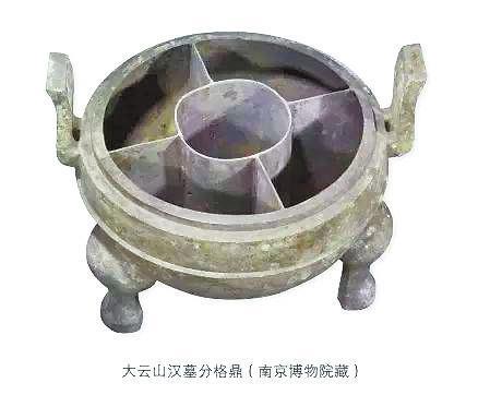 這里說的“五熟釜”,內分數格,開煮時,中間爐火熾烈,四周湯羹沸騰,可以同時煮熟多種食物。很像北京涮羊肉鍋和重慶九宮格的初級合體。
