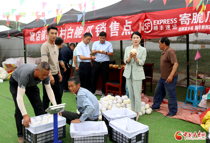 2023年,秦安縣委、縣政府把培育發展白脆瓜作為促進秦安農民增收的又一重要抓手后,她充分發揮擁有一定的銷售市場的特長,積極進行市場推介,引導群眾大力發展白脆瓜產業,成功將秦安白脆瓜打入蘭州國際高原夏菜市場,為群眾鋪開了一條白脆瓜的熱銷路,幫助群眾銷售白脆瓜16萬斤,銷售額達160萬元以上,不僅解決了魏店及周邊5個鄉鎮群眾白脆瓜的銷售問題,更為群眾進一步發展白脆瓜產業增強了信心。