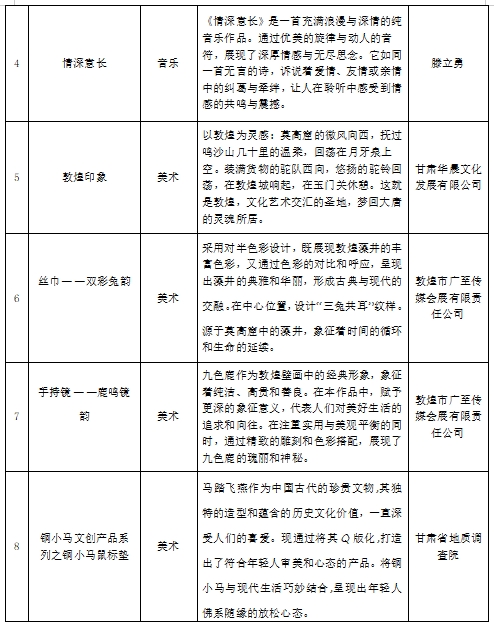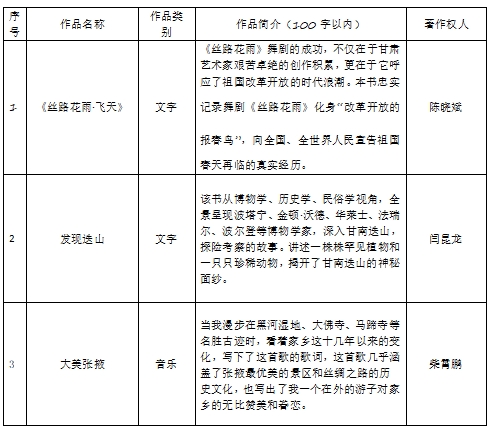 2024年6月,甘肅版權綜合服務平臺共完成省內作品登記804件,其中文字作品235件、美術作品469件、攝影作品9件、音樂作品39件、視聽作品20件、口述作品8件、其他作品24件。經認真組織篩選,并經著作權人同意,現公開推薦以下10件優秀作品,歡迎社會各界交流合作。(聯系方式:0931-8270727)