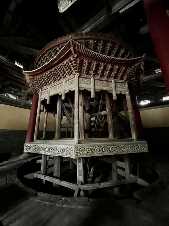 轉輪藏指可以轉動的經書架。它始建于北宋、直徑達7米,榫卯相嵌形成一座古樸的八角亭。八根方柱自頂部向下收縮,將重量匯至一點。“如此巨大的木建筑,一兩人就能推動,常令游客驚嘆。”正定縣隆興文化旅游發展有限公司講解員王瑋瑤說。