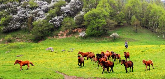 關山在很長一段時間一直是中國重要的牧馬之地。據史書記載,大將衛青、霍去病北征匈奴,曾從關山征集戰馬14萬匹,足見當時這里牧馬業的繁盛。然而現在,馬的蹤跡只是景區的點綴,要想看到萬馬奔騰的場面,要去河西走廊的山丹軍馬場。