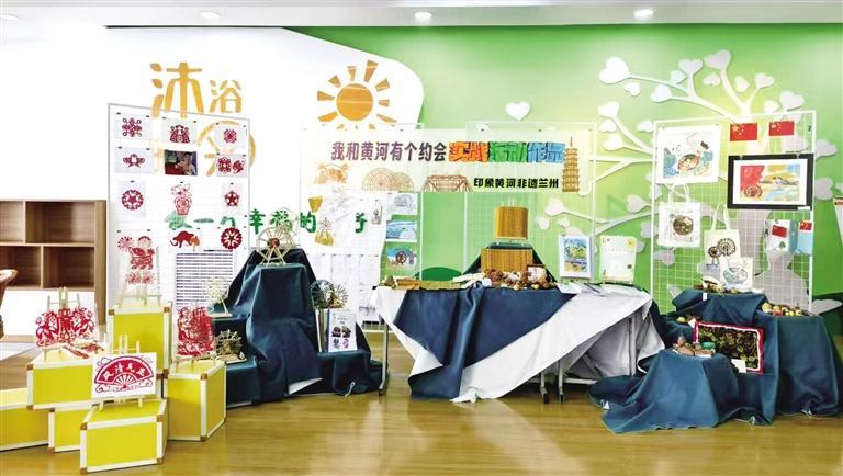 開學伊始,蘭州市城關區牟家莊小學在學校一樓大廳的小舞臺上精心布置以“‘暑’我不一樣,實踐助成長·我和黃河有個約會”為主題的“暑期實踐活動成果”作品展,同學們用廢舊材料自制的水車、精美的蘭州剪紙、蘭州牛肉面文創產品等代表著蘭州文化特色的作品琳瑯滿目、種類豐富,來往的師生都情不自禁地駐足欣賞,感受家鄉文化的魅力。