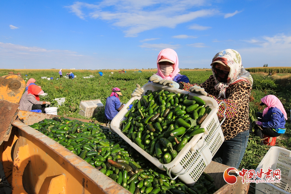 9月1日,嘉峪關(guān)市新城鎮(zhèn)長(zhǎng)城村一農(nóng)民專業(yè)合作社種植的子彈頭辣椒喜獲豐收,種植戶搶抓農(nóng)時(shí)采摘,農(nóng)用機(jī)械車輛穿梭于田間地頭,鄉(xiāng)村田野呈現(xiàn)出一派繁忙的景象。