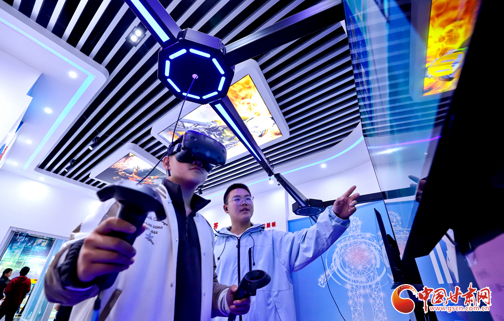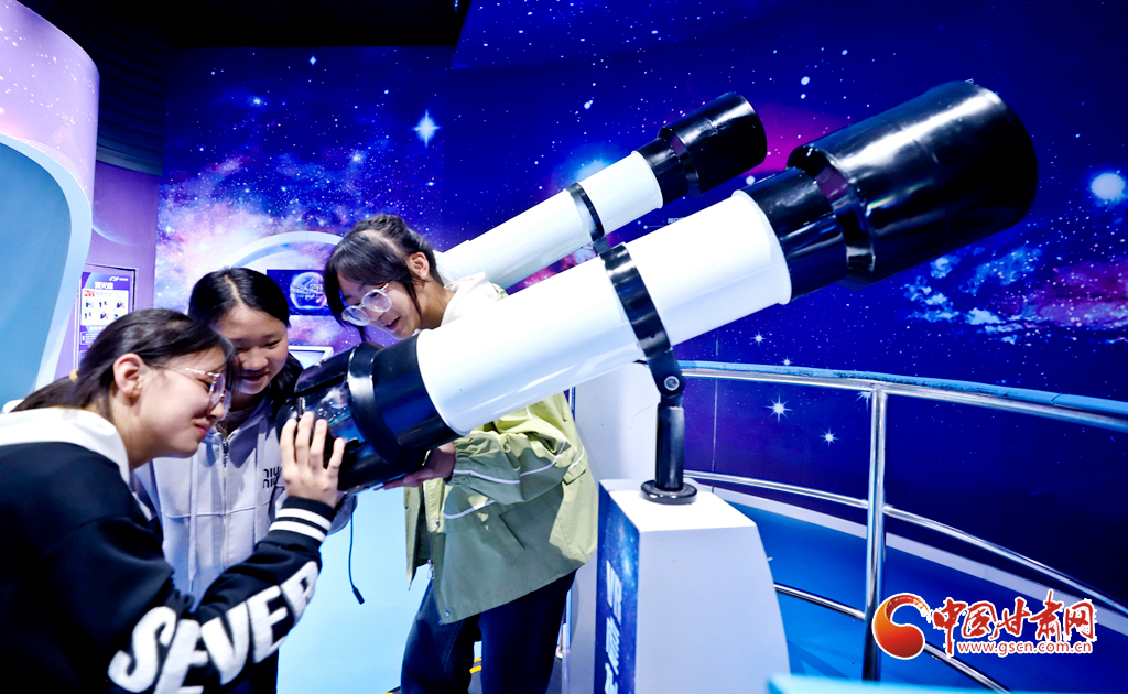 10月2日,在甘肅省張掖科技館內,科普志愿者引領家長和孩子們,了解宇宙星系知識,體驗電磁秋千、太空漫步VR,進行有趣的虹吸現象、光線投影變化等實驗,近距離感受科技發展變化的魅力,快快樂樂歡度國慶假期。