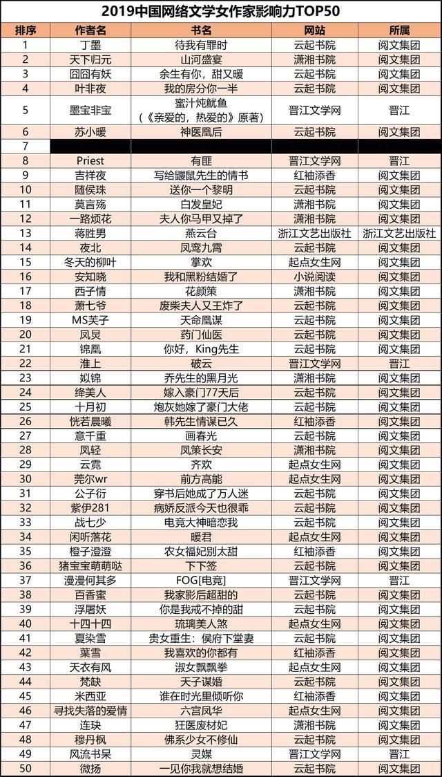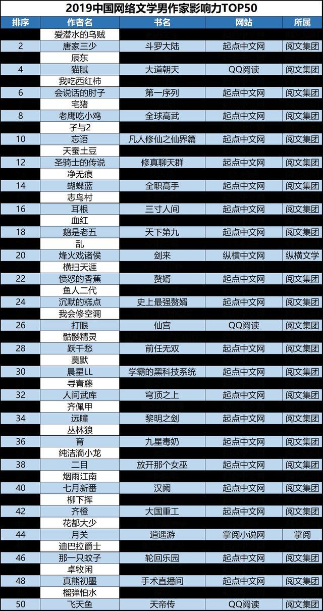 中國青年報客戶端訊(中青報·中青網記者 沈杰群)日前,《2019年中國網絡作家影響力榜》正式發布,通過對作家的作品影響力、平臺影響力及新媒體影響力多維度的分析與論證,綜合衡量出作家影響力,評選出國內最具影響力男作家TOP50及女作家TOP50。