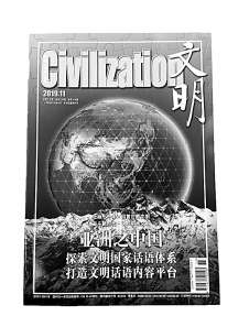 2019年10月起,《文明》雜志以探索傳播新時代文明思想和構建新文明話語體系為主題,連續三期特別策劃推出以26年文明工程實踐和18年《文明》傳播案例為基礎,由文明傳播課題組撰寫的長篇研究報告——《中國之中國:文明國家的話語體系(上篇)》《亞洲之中國:文明國家的話語體系(中篇)》與《世界之中國:文明國家的話語體系(下篇)》,解構了西方話語范式,構建了中國文明話語體系,解讀了文明的內涵與外延,凸顯文明思想。