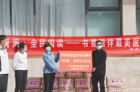 本報訊 (通訊員 裴飛)3月21日,青海省委宣傳部來到青海支援湖北醫療隊集中休養駐地賓館,開展“書香青海·全民閱讀——書香陪伴最美醫務工作者”贈書活動,向醫療隊員送去500冊價值2.4萬元的圖書。