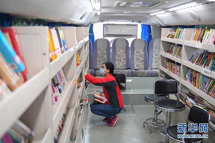 3月26日,在長沙岳麓區石嶺塘社區,市民在流動圖書館里挑選書籍。 近日,在做好疫情防控工作的同時,長沙流動圖書館恢復運營。長沙流動圖書館是長沙圖書館的總分館流動服務項目之一,以大巴車為載體,每月定期到社區、學校、企業、工地等區域,為市民提供閱覽、咨詢、辦證、借書、還書等便捷化公共服務。 新華社記者 陳澤國 攝