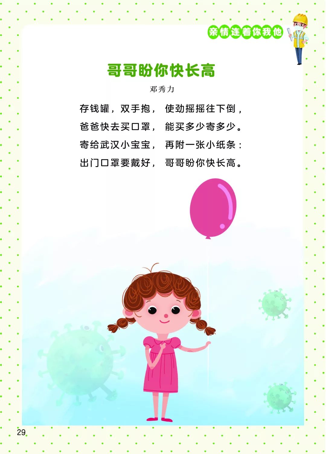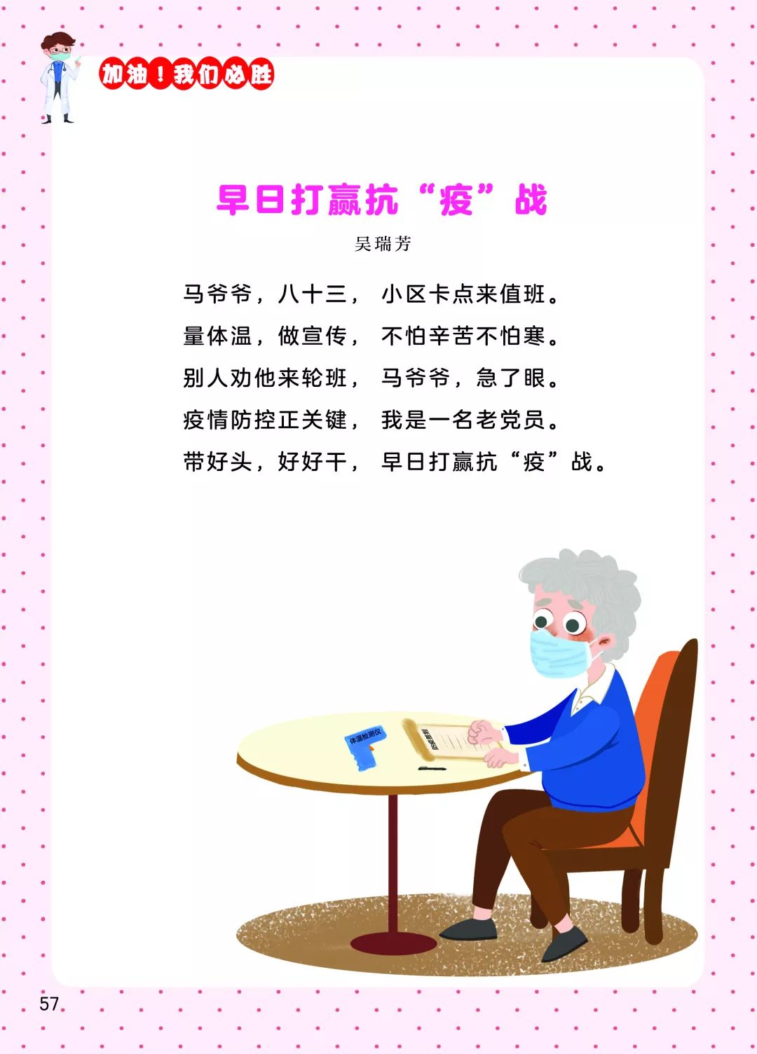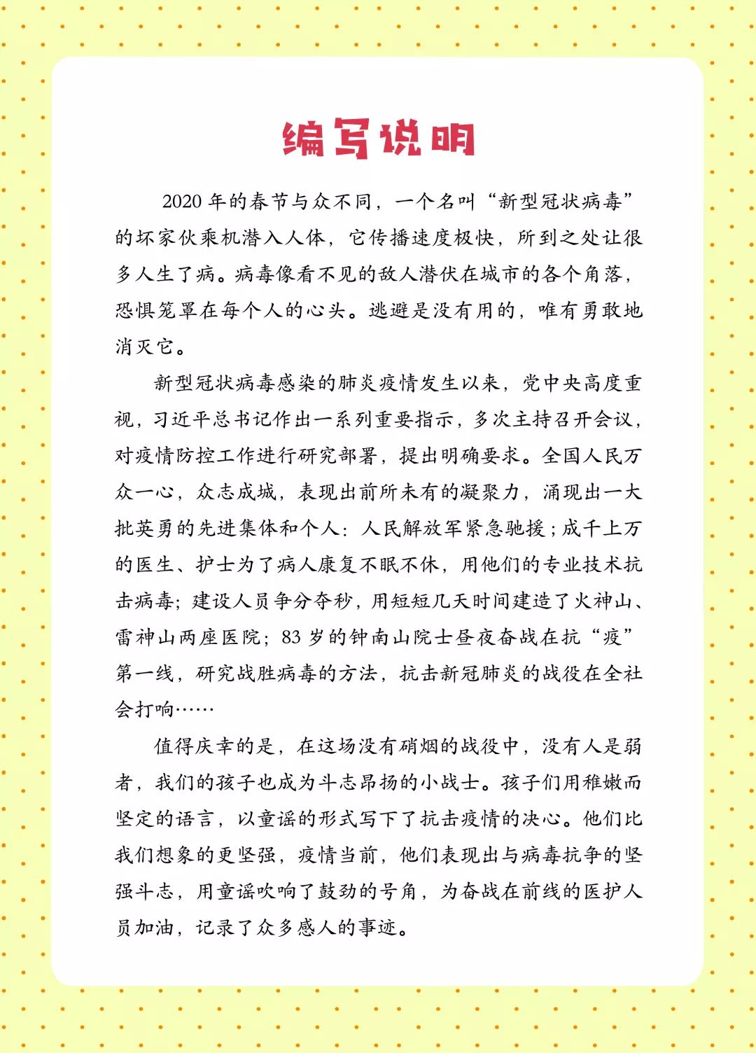 新冠肺炎疫情爆發以來,全國人民積極投入到疫情防控阻擊戰中,孩子們、兒童文學作家也紛紛發聲,創作了大量優秀的童謠。每一首童謠是一聲鼓勁的吶喊,匯集起來就是嘹亮的戰歌;每一首童謠點亮一束希望的光,光束匯聚就是光明的未來。