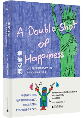 書名《幸福雙響》(A Double Shot of Happiness),來自蒂姆最愛的創作之一。朱迪用優美且感人肺腑的筆觸,訴說著蒂姆漫長的人生旅程——從被診斷為重度自閉癥患者到嶄露頭角成為備受推崇的藝術家,以及一個能夠愛人與被愛的年輕人。