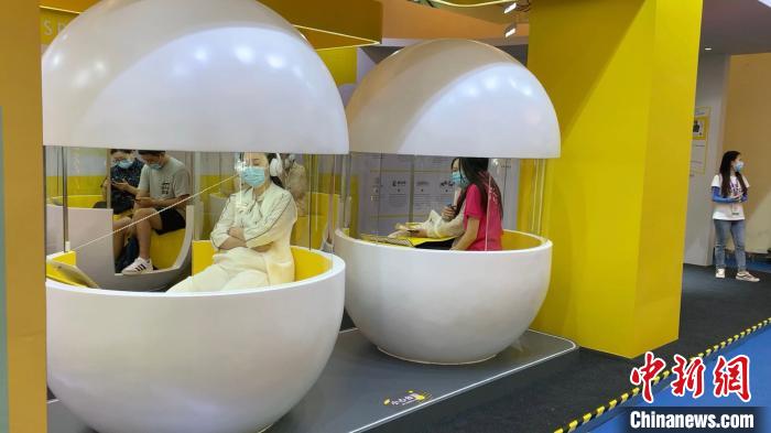 第一次參加上海書展的樊登讀書,更是將沉浸式視聽體驗的“未來自習室”搬到了書展現場,展區內通過時間膠囊的交通工具、彩虹橋般的道路、睡眠艙體般的臥室等互動裝置,構建“在車上、在路上、在家里”三種碎片化閱讀場景,以視聽交互的呈現方式,讓更多人享受沉浸式閱讀體驗,打通閱讀與日常生活、工作的互動場景。市民杜先生在體驗完展區內的視聽裝置后表示:“時間膠囊真的讓我們感受到了未來‘隨時隨地’的數字化閱讀場景,這是愛書人的福音。”