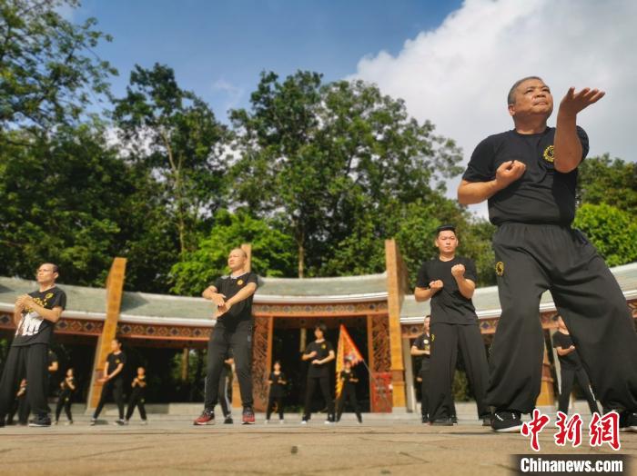 佛山市政府今年印發(fā)了《佛山市加快建設(shè)“世界功夫之城”實施方案》,各區(qū)大力推進(jìn)武術(shù)發(fā)展平臺建設(shè),圖為當(dāng)?shù)靥厣?ldquo;廣場武”。 應(yīng)妮 攝
