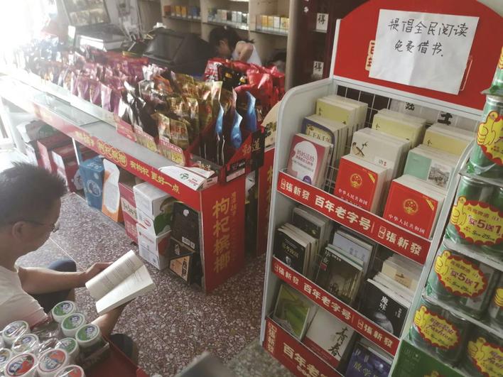 金圫村村民正在方斗家批發部里的“圖書館”讀書。金圫村供圖