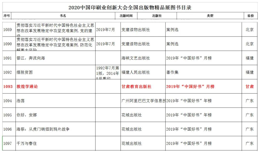“全國出版物精品展”主要展示黨的十九大以來出版的優(yōu)秀圖書。此次展覽共入選圖書1727種,甘肅教育出版社出版的《敦煌學(xué)通論》為甘肅省唯一入選“全國出版物精品展”圖書。