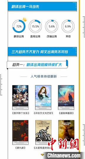 翻譯出海方面,《放開那個女巫》《許你萬丈光芒好》等多元類型優質作品持續涌現,人氣榜單更新迭代加速;《詭秘之主》等新晉熱門作品海內外同步圈粉;人工和AI智能翻譯雙線加速國內精品網絡文學作品的出海之路。
