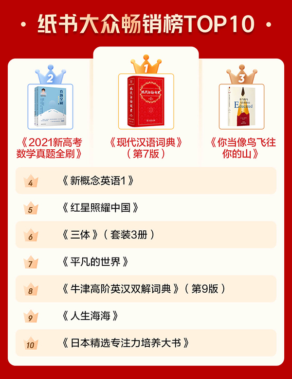 高考是中國大多數學生的必經之路,想要從萬人中脫穎而出,需要付出許多的努力。從京東圖書數據不難看出,攻克數學難關已成為萬千學子的重要任務,在2020年最暢銷的大眾新書和最暢銷的大眾紙書中,《2021新高考數學真題全刷》分別排名第一、第二。