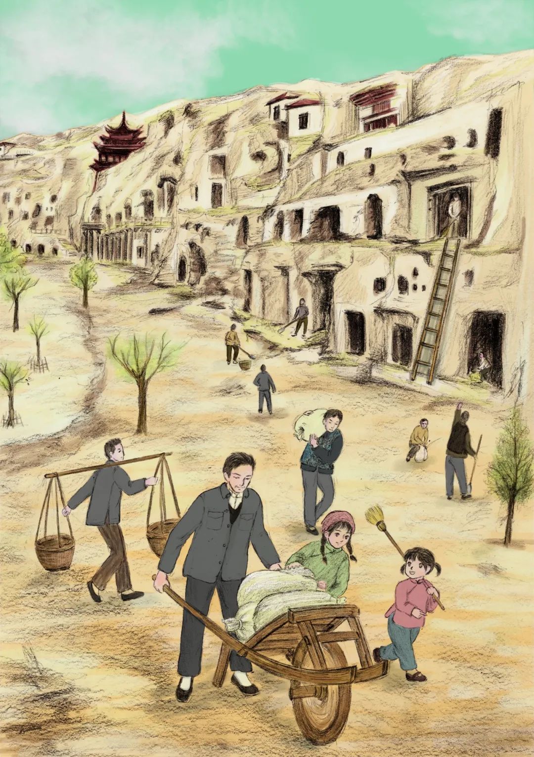 這也是一本有時代縱深感的書,它從欣潔失去媽媽的抗戰時期寫起,一直寫到中國人民解放軍接管敦煌。它寫欣潔一家坐著敞篷卡車,一路顛簸從成都來到敦煌,作品對沿途自然風貌和人情民俗的多彩變化都有生動描寫。它寫欣潔一家在敦煌的小土屋里安家,既有時代地域特色又有家庭的溫馨和暖陽。它寫一個小女孩如何從對莫高窟的一無所知到逐漸認知、理解再到熱愛的成長歷程,充分表現了敦煌人一開始就具有的積極上進的理想和精神。同時作者也力圖通過這樣一個故事告訴我們,一個孩子是怎樣認識并理解敦煌的。