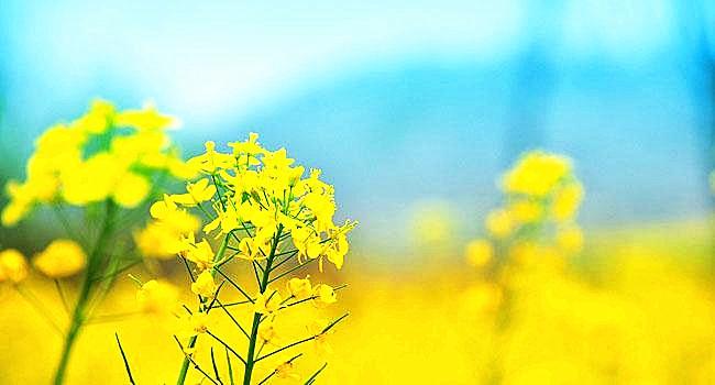 故鄉的油菜種植一般是在秋季,將上好的田地犁成一垅垅的長條狀,寬約一米多,地垅之間留一條小溝,以便排水之用。種植時,將長條地垅平整好,地垅兩邊低中間略高,再用鋤頭農具根據間距大小一排一排地挖淺坑,土淺坑里放上十幾粒油菜籽種,再抓一把草木灰掩蓋住,大約十天左右時間,油菜芽便鉆了出來。油菜花的田間管理非常重要,除及時補苗外,期間還要鋤幾次雜草,施幾次農家肥(或化肥)。兒時,一到放寒假或禮拜天,我們這些十來歲大的孩子便幫助家里人去油菜地里拔雜草。油菜花最旺的生長季節是在春節過后,此時春色春風春光春雨,長勢一天一個樣,尤其是每次“貴如油”的春雨下過后,陽光下的油菜郁郁蔥蔥,在春雨的浸潤中越發嬌嫩,水淋淋的姿態,圓圓的水珠在嫩葉上滾動。