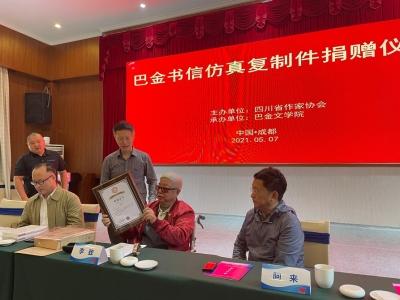 5月7日上午,巴金書信手稿復制件捐贈儀式在位于成都龍泉驛的巴金文學院舉行。巴金侄子、作家李致捐贈了巴老寫給自己的二百余封信,以及李致父親、巴金大哥寫給巴金的四封僅存信件的仿真復制件。李致說,所有這些信,充分展示了巴老的內心世界。這些珍貴的文本由青羊區檔案館精心復制,幾乎與原信沒有差別。