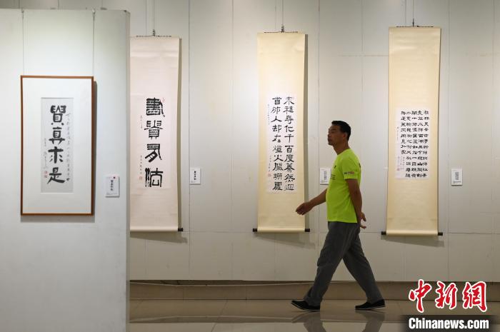 圖為觀眾參觀書法展。 何蓬磊 攝