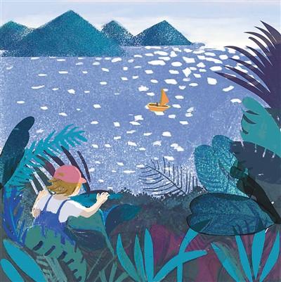 在遠離故鄉的城市里,我的心無處可去。身處故鄉的時候,我們總眼望遠方,“然而/那未知的風景才是我向往的/哪怕它已落花滿地/哪怕它已人去樓空”。我喜歡這四句,因為它那種平靜而堅決的向往,寥寥幾句卻直透人心。這首詩的配圖是樹叢中的孩子遠眺平靜湖面上一艘小船,粼粼的湖面像藍灰色的操場一樣平實,就像無聲的邀請。但當我們走到遠方,故鄉又會成為心頭揮之不去的念想。