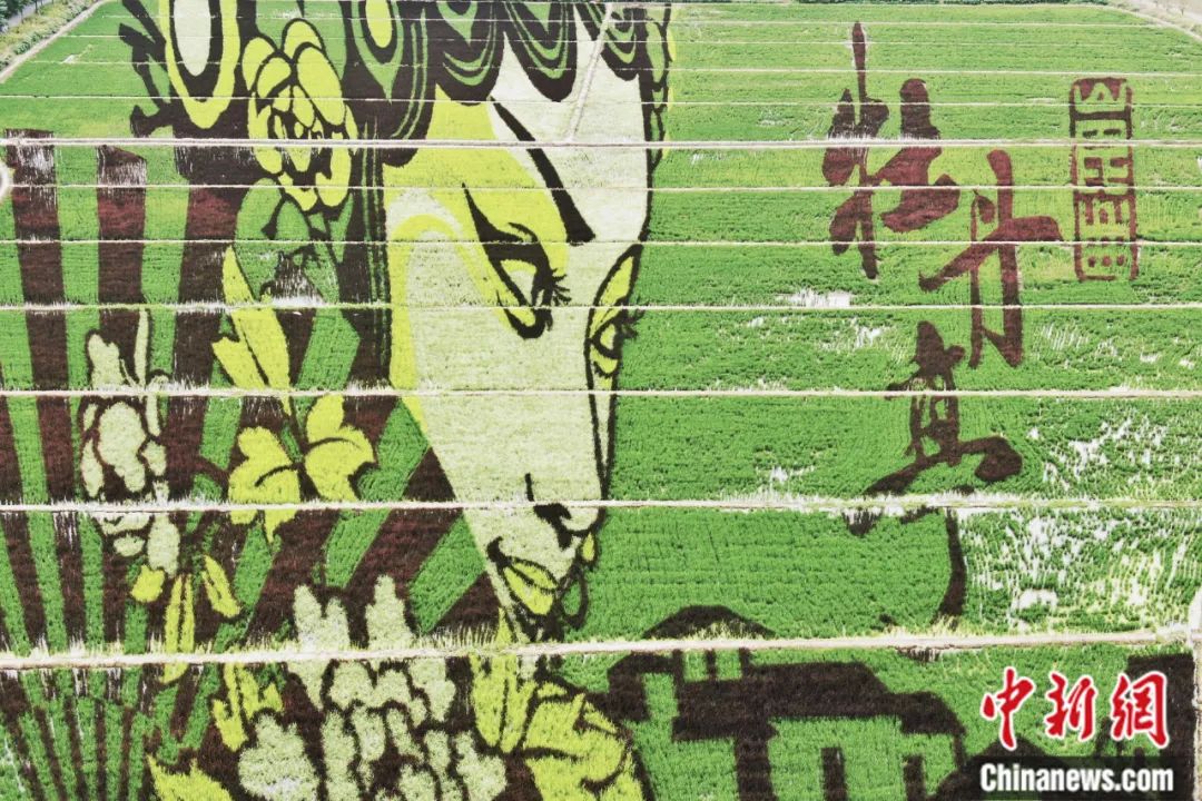 2020年8月,航拍江蘇昆山張浦鎮“牡丹亭”稻田藝術畫。中新社記者 泱波 攝