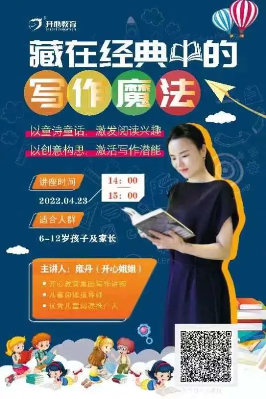 書香潤校園·一堂開心讀寫魔法課,以童詩童話,激活孩子的閱讀興趣以創意構思,激活孩子的寫作潛能快來掃碼預約直播吧。