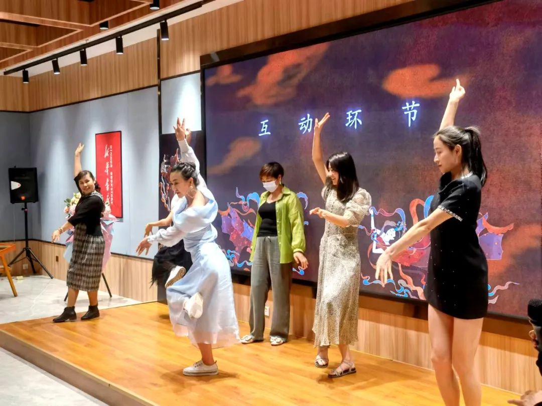 見面會還設(shè)計了互動環(huán)節(jié),主編李莉現(xiàn)場教學(xué),五位敦煌舞愛好者認(rèn)真模仿,作者還向參與互動的讀者贈送了本書。在簽售環(huán)節(jié)后,作者及參演人員和讀者合影留念。